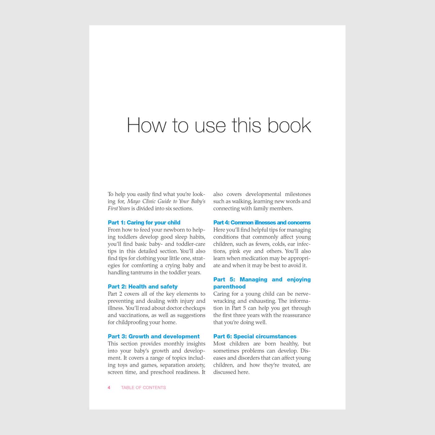 Mayo Clinic Guide to Your Baby’s First Years combines everything you need to know about your baby’s first three years in an easy-to-read, convenient guide. Using the detailed month-to-month calendar, learn what to expect and what steps you can take to ensure a foundation of healthy growth and development.